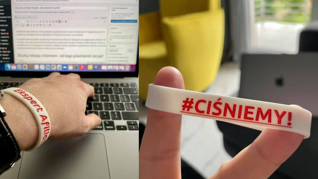 - BONUS #4 Silikonowe opaski na rękę z Logo Ekspert Afiliacji oraz #CIŚNIEMY!